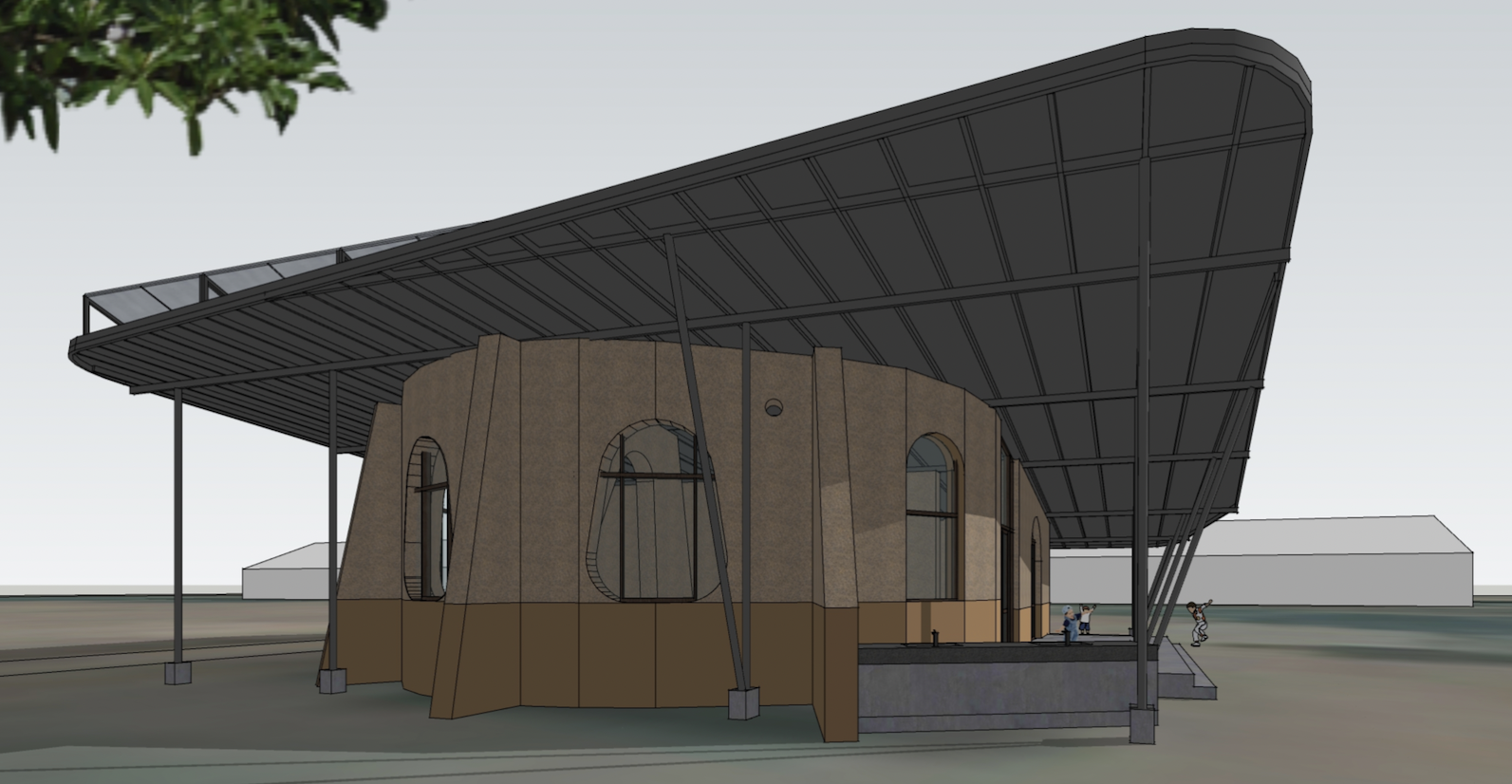 A large roof overhang will provide outdoor play space, with an additional patio and handwashing sink on the west side. The roof, designed by ecological permaculture expert Ben Murray, will enhance cooling and natural ventilation.