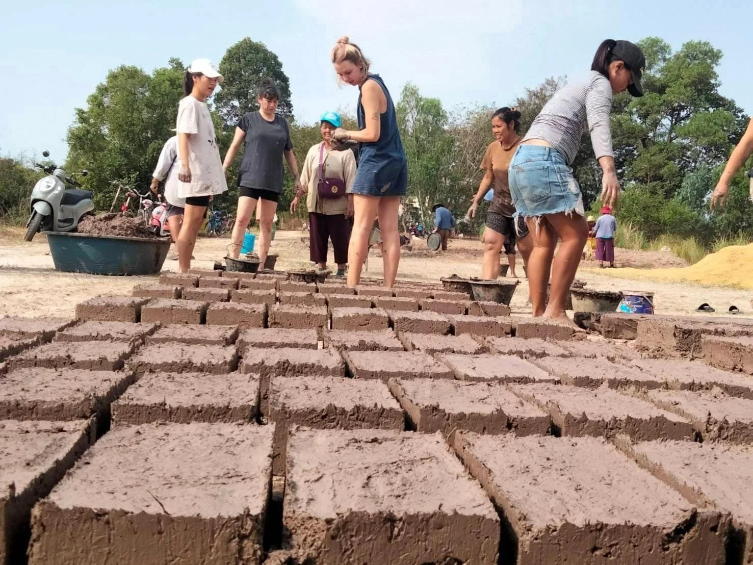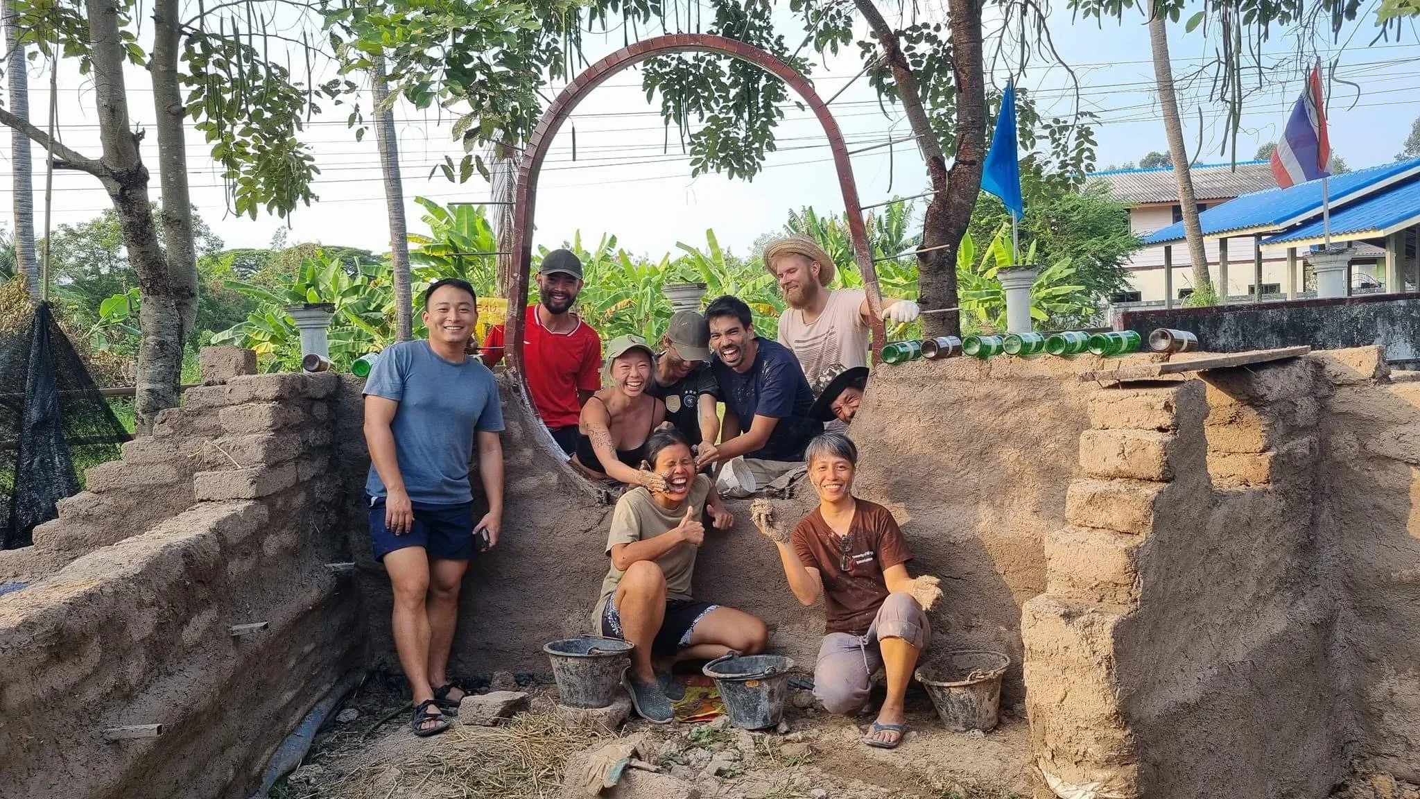We are currently building the earthen structure for our green building project, supported by dedicated volunteers who contribute their time and skills. Additionally, we hire local villagers, providing them with income and supporting the local economy through this initiative. These collaborative efforts not only advance our project but also create meaningful experiences for everyone involved.
