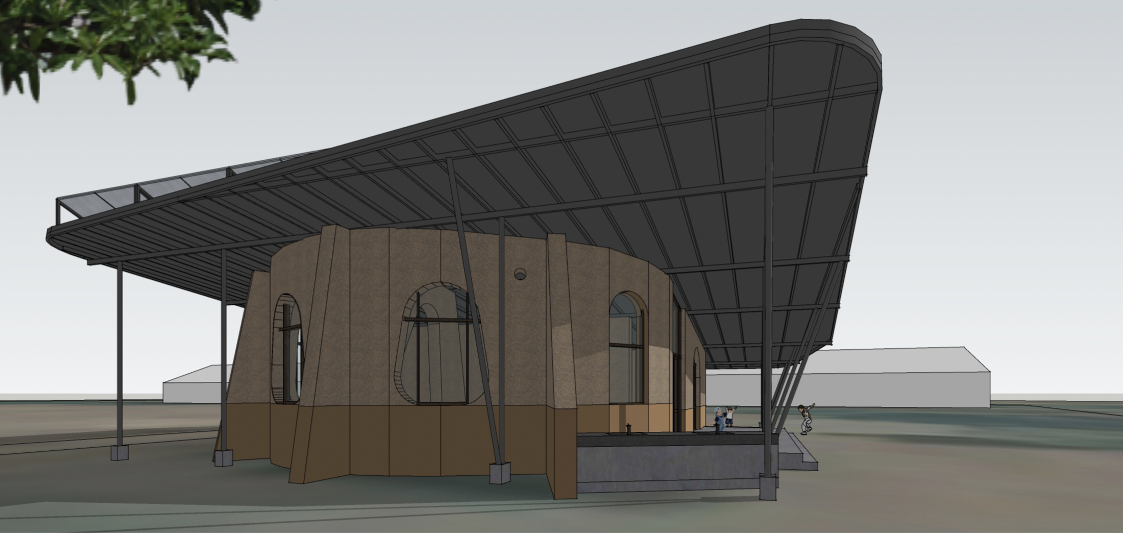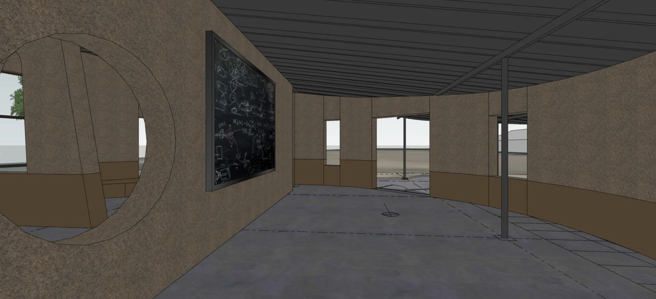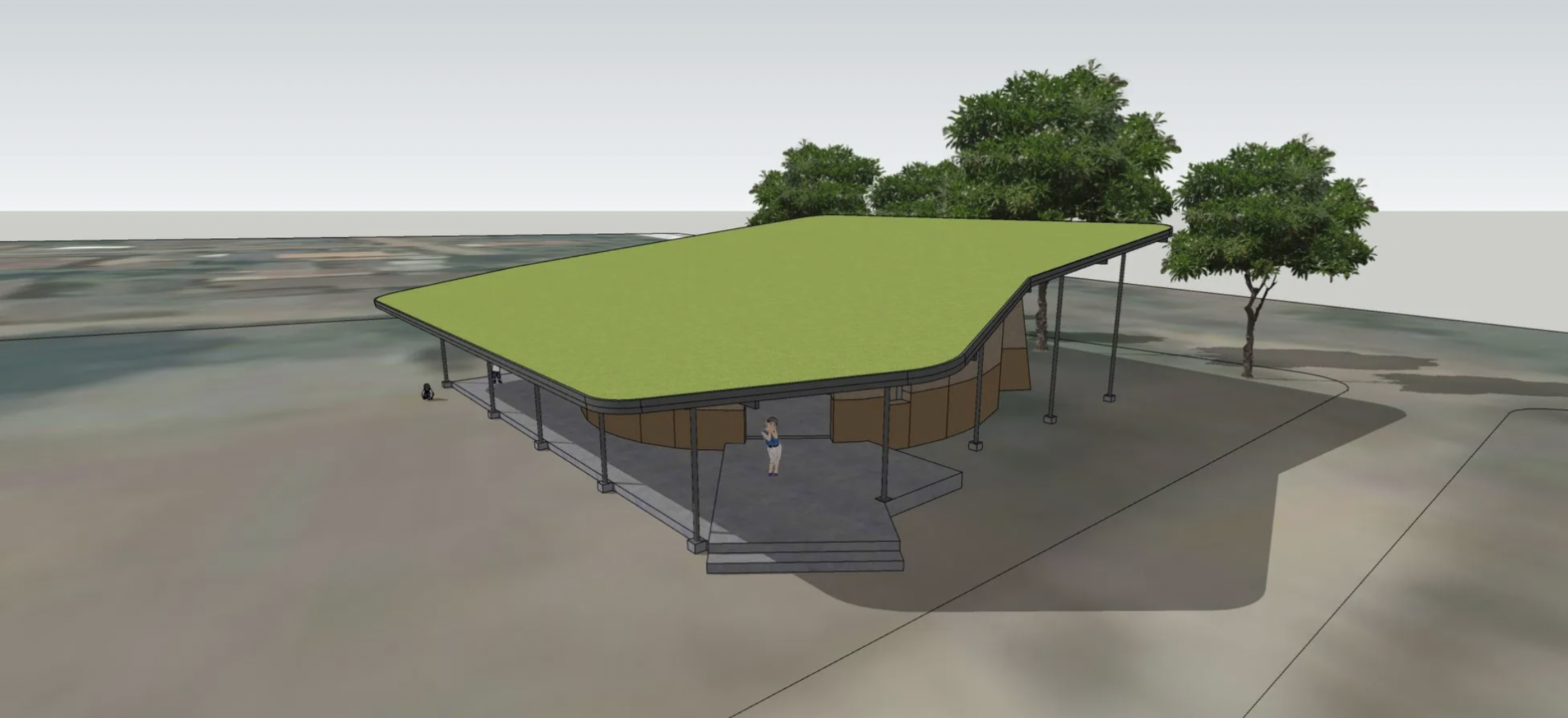 A large roof overhang will provide outdoor play space, with an additional patio and handwashing sink on the west side. The roof, designed by ecological permaculture expert Ben Murray, will enhance cooling and natural ventilation.